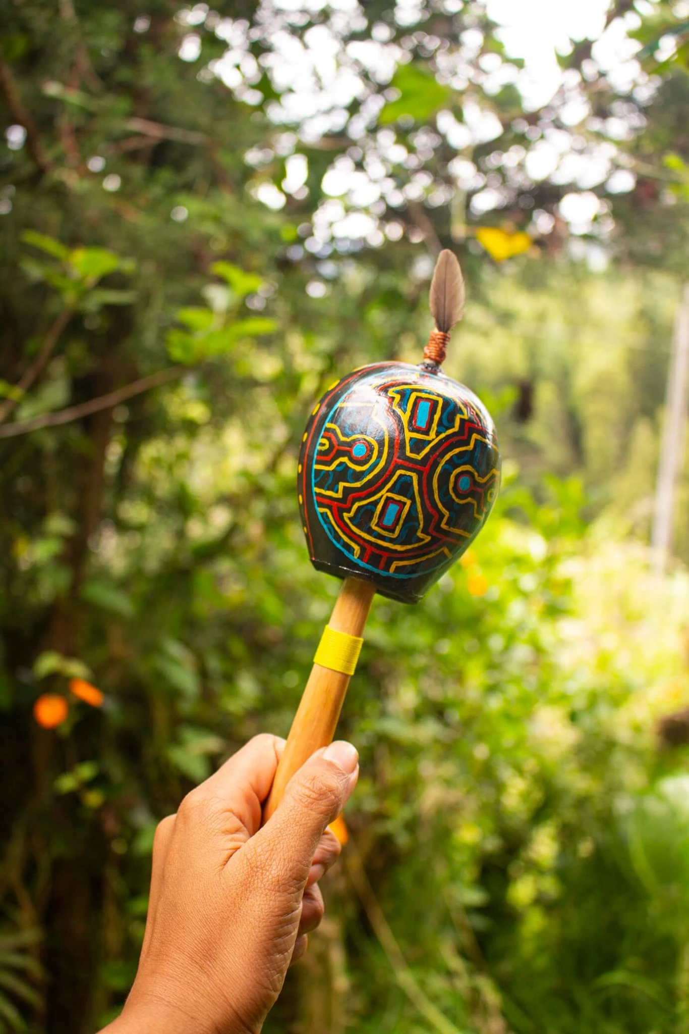 Maraca ceremonial, diseños etnicos exclusivos, tallada y pintada a mano, ideal para meditaciones, altares, ceremonias, sanaciones, sonoterapias, etc.
