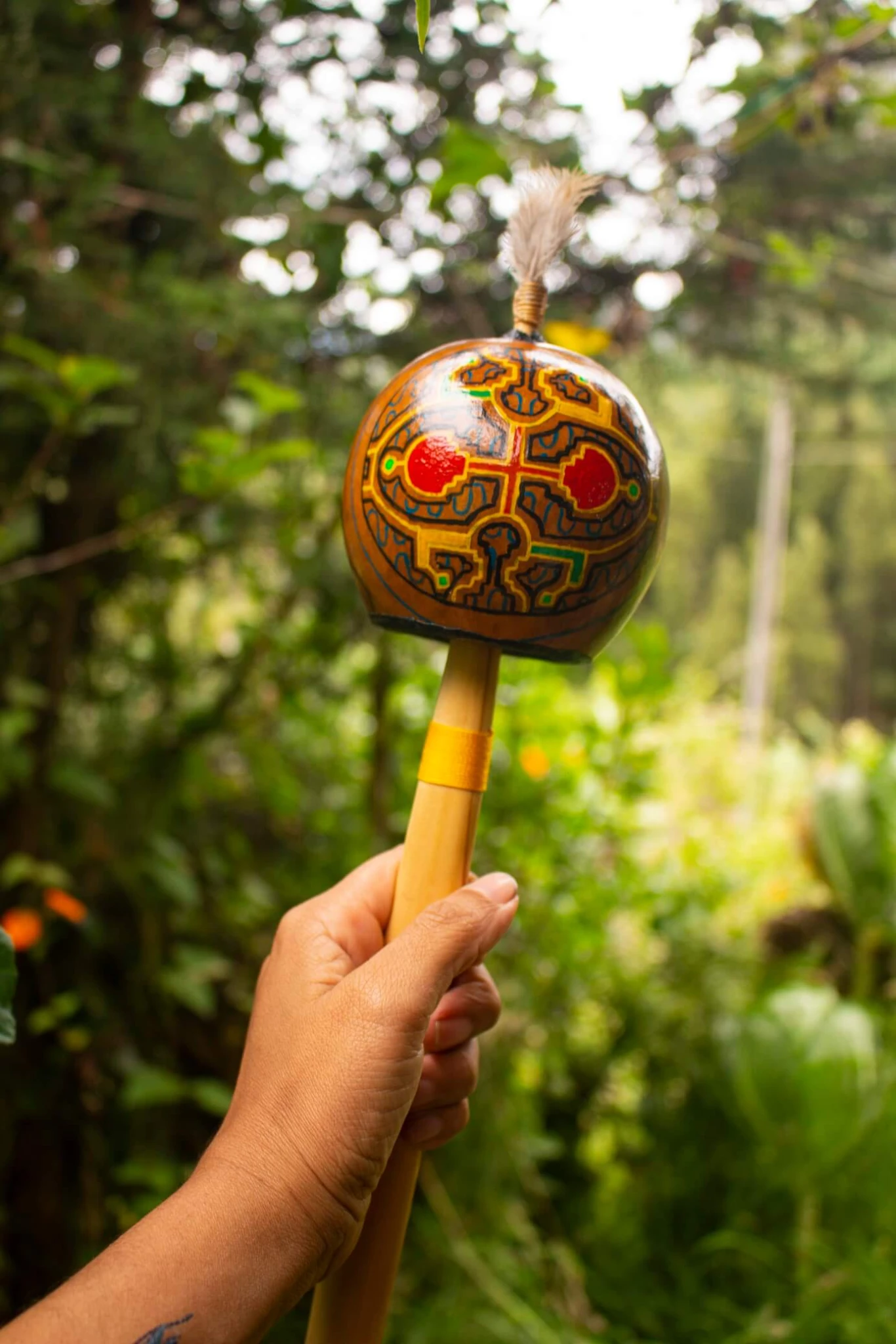 Maraca ceremonial, diseños etnicos exclusivos, tallada y pintada a mano, ideal para meditaciones, altares, ceremonias, sanaciones, sonoterapias, etc.